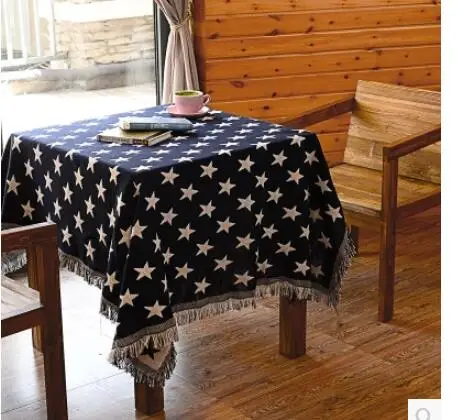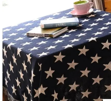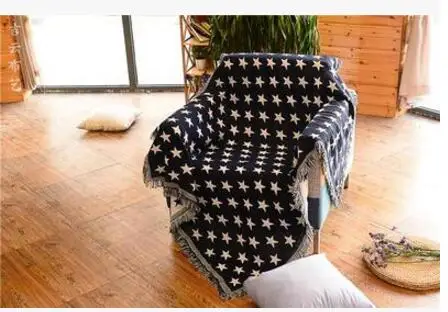 Special Offer Basit Derin Mavi Ve Beyaz Yıldız Desen Kalınlaşmak Iplik Battaniye Pamuk Keten Havlu Sandalye Battaniye Mat Püskül Discount (50%OFF) Today!