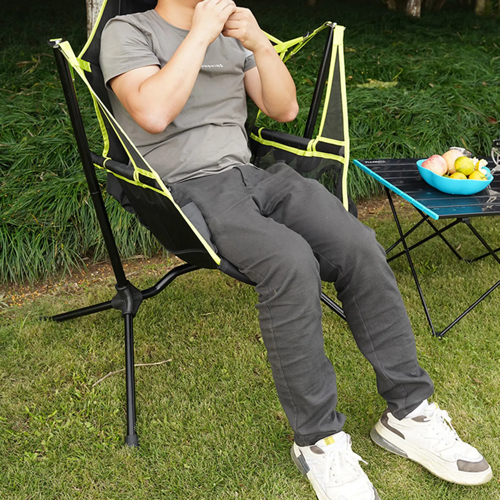 Product Name: Açık Katlanabilir Sallanan Sandalye Kamp Sandalyesi Katlanır Sallanan Balıkçılık Sandalye Için Yastık Ile Açık Havada Seyahat Ayı 150KG Kadar