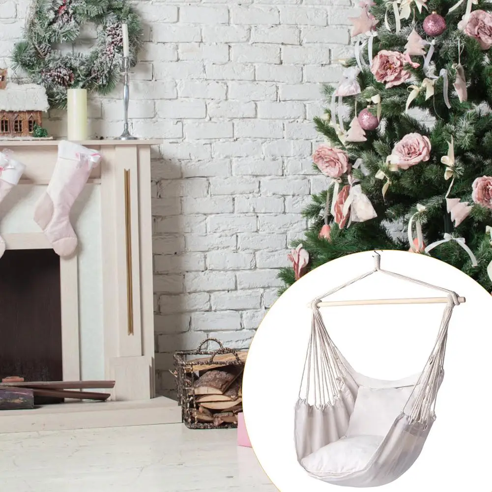 Product Name: Açık Kamp Aracı Pamuk Tuval Asılı Sandalye Açık Ev Için Salıncak Hamak Sandalyeler Kapalı Seyahat Beyaz çizgili Salıncak