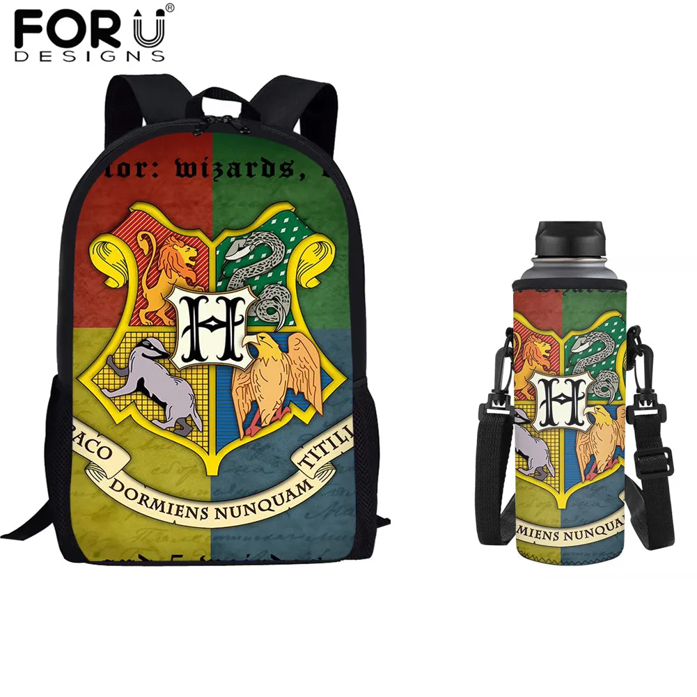 Product Name: FORUDESIGNS Moda öğrenci Büyük Kapasiteli Okul çantaları Amblemi Sembolü Tasarım Baskı Sırt çantası Ve Spor Su şişesi çantası Mochila